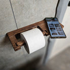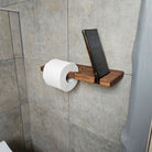 Wood Toilet Paper Holder with Phone Shelf, Wall Mounted Oak Roll Holder for Bathroom, Minimalist Toilet Paper Storage