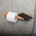 Wall-Mounted Wooden Toilet Paper Holder with Shelf and Phone Slot, Bathroom Accessory