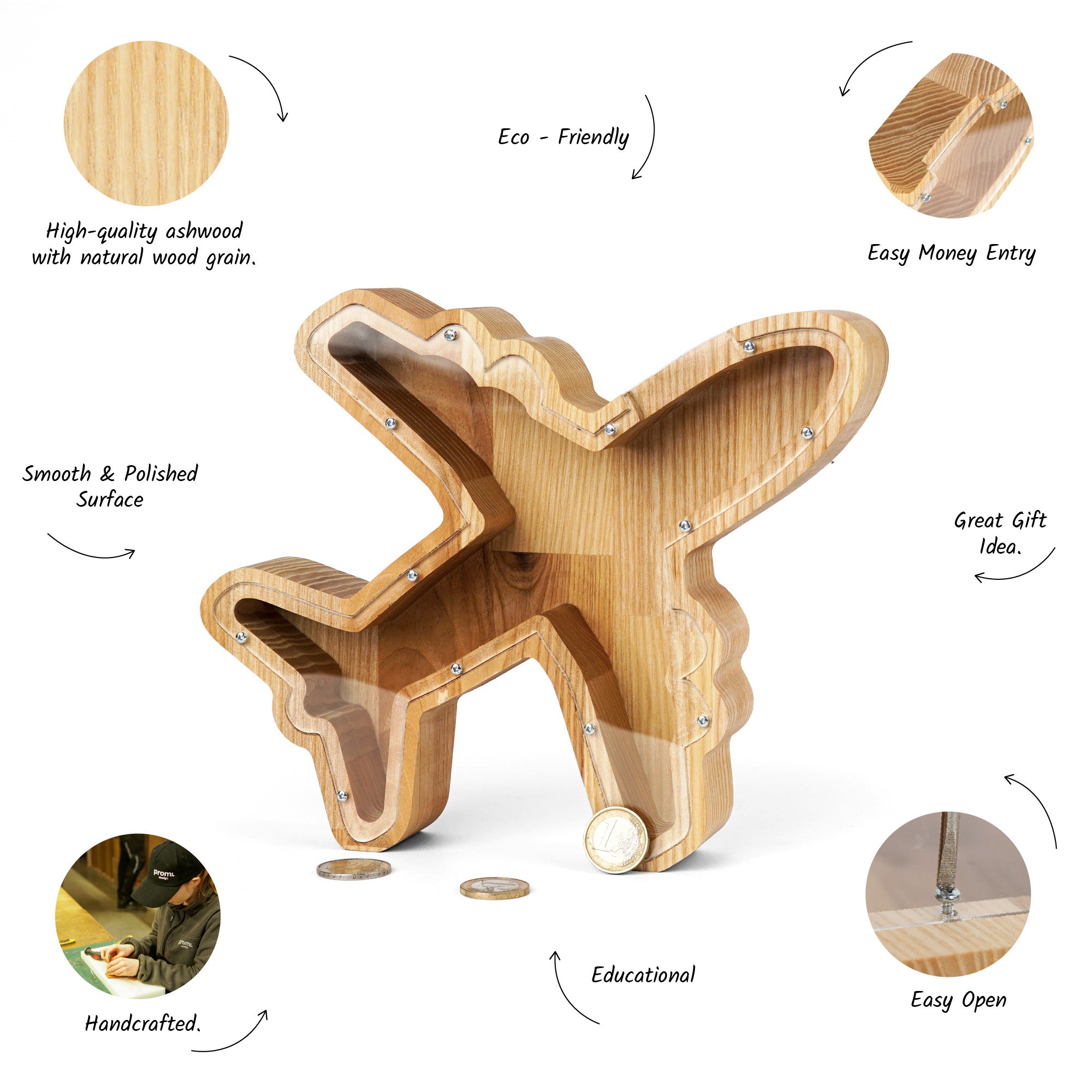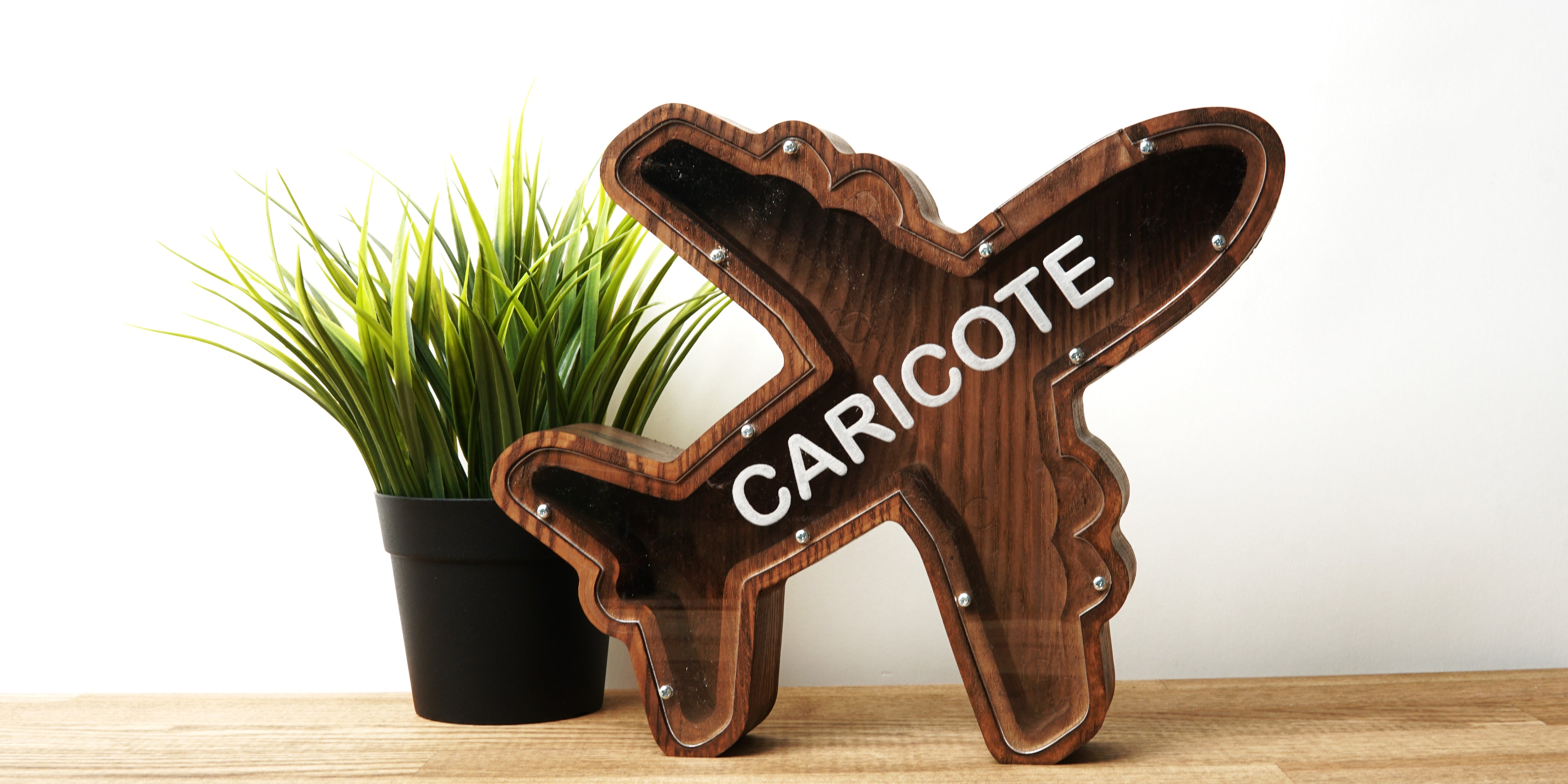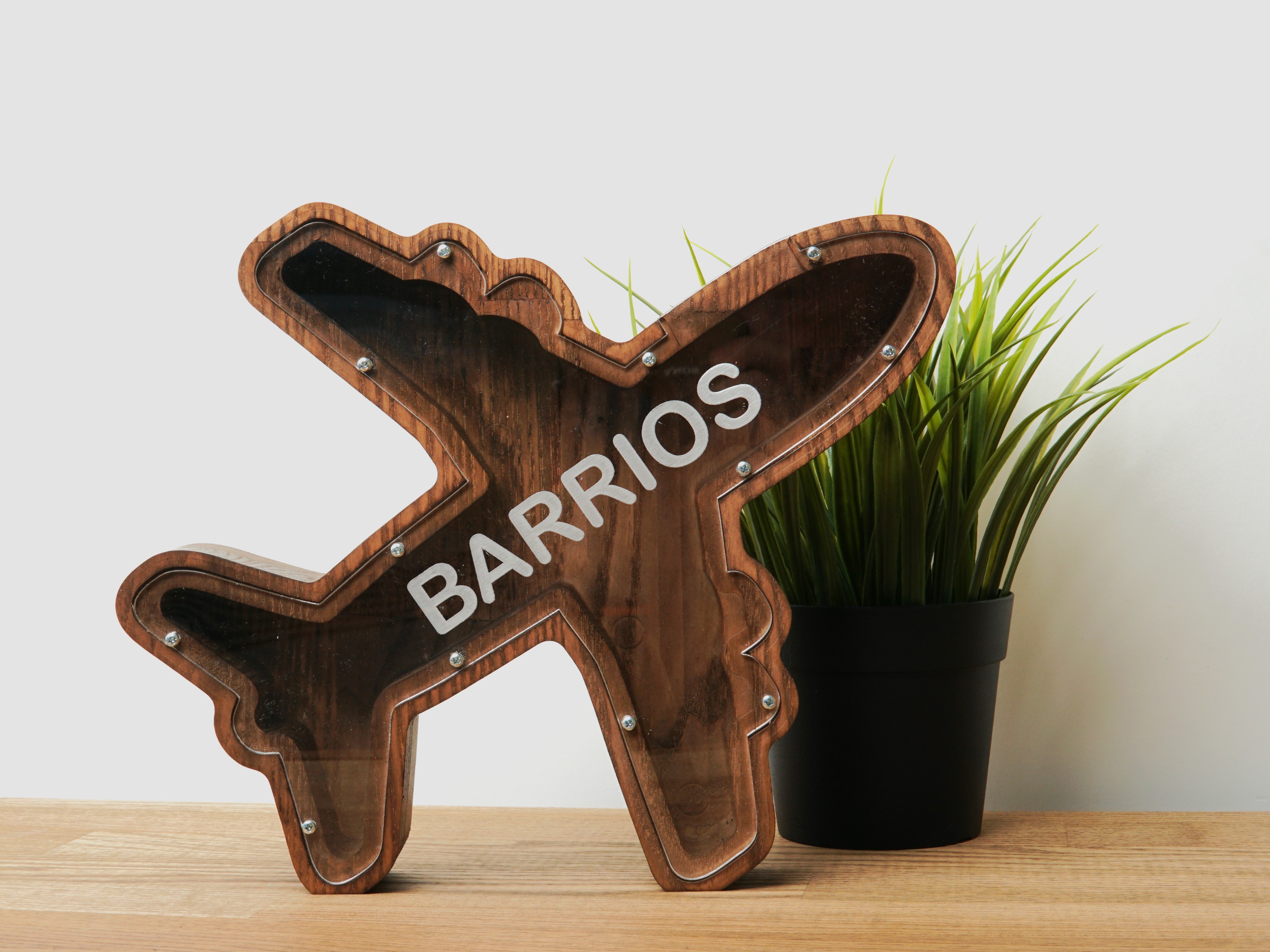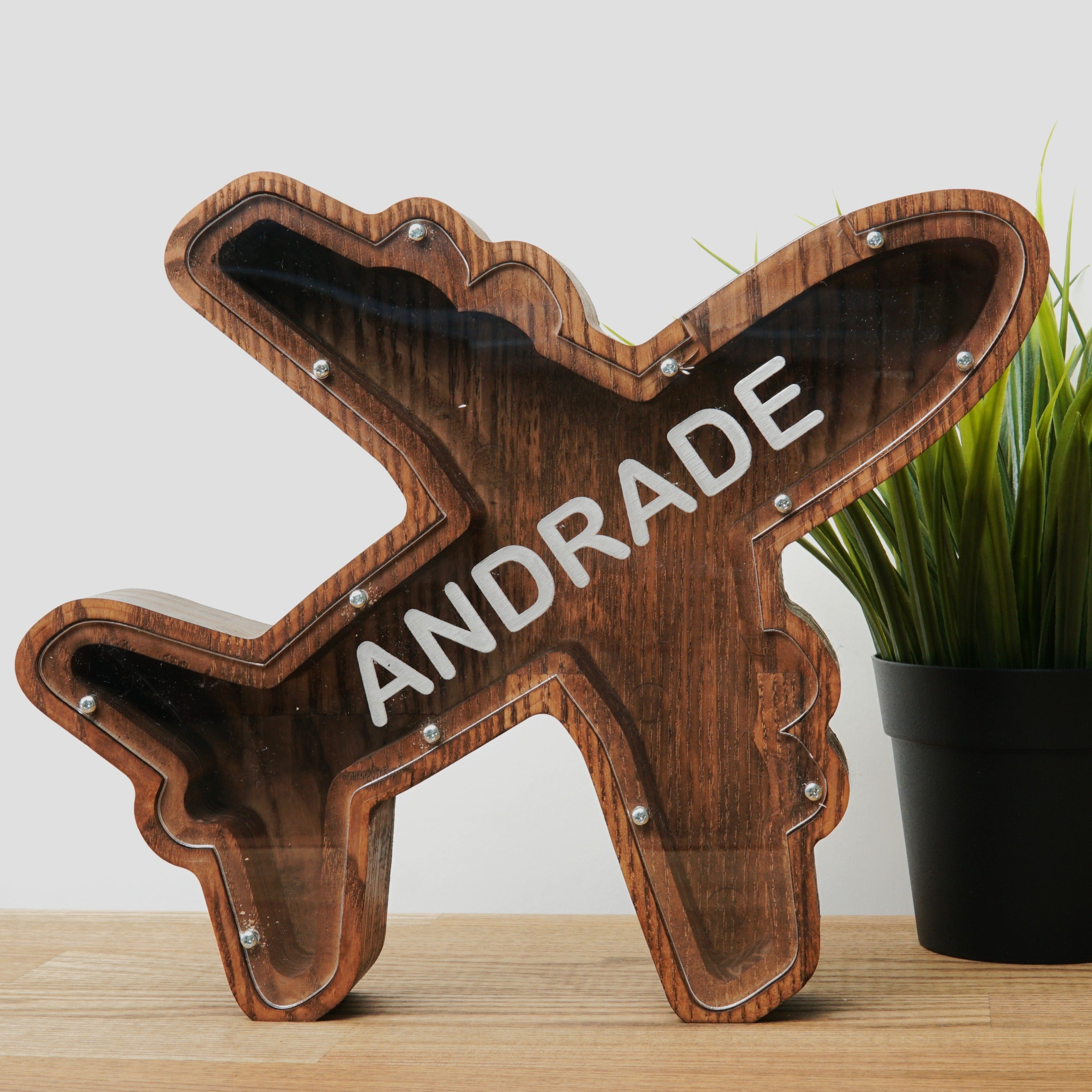 Plane-Shaped Piggy Bank, Wooden Coin Bank for Kids, Home or Office, Desk Accessory, and Decorative Money Box