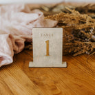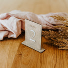 - Each number features a minimalist arch-shaped design. Its simple, modern look makes it easy to place on any table without additional support. The design is perfect for adding an elegant touch to any event or wedding decor.