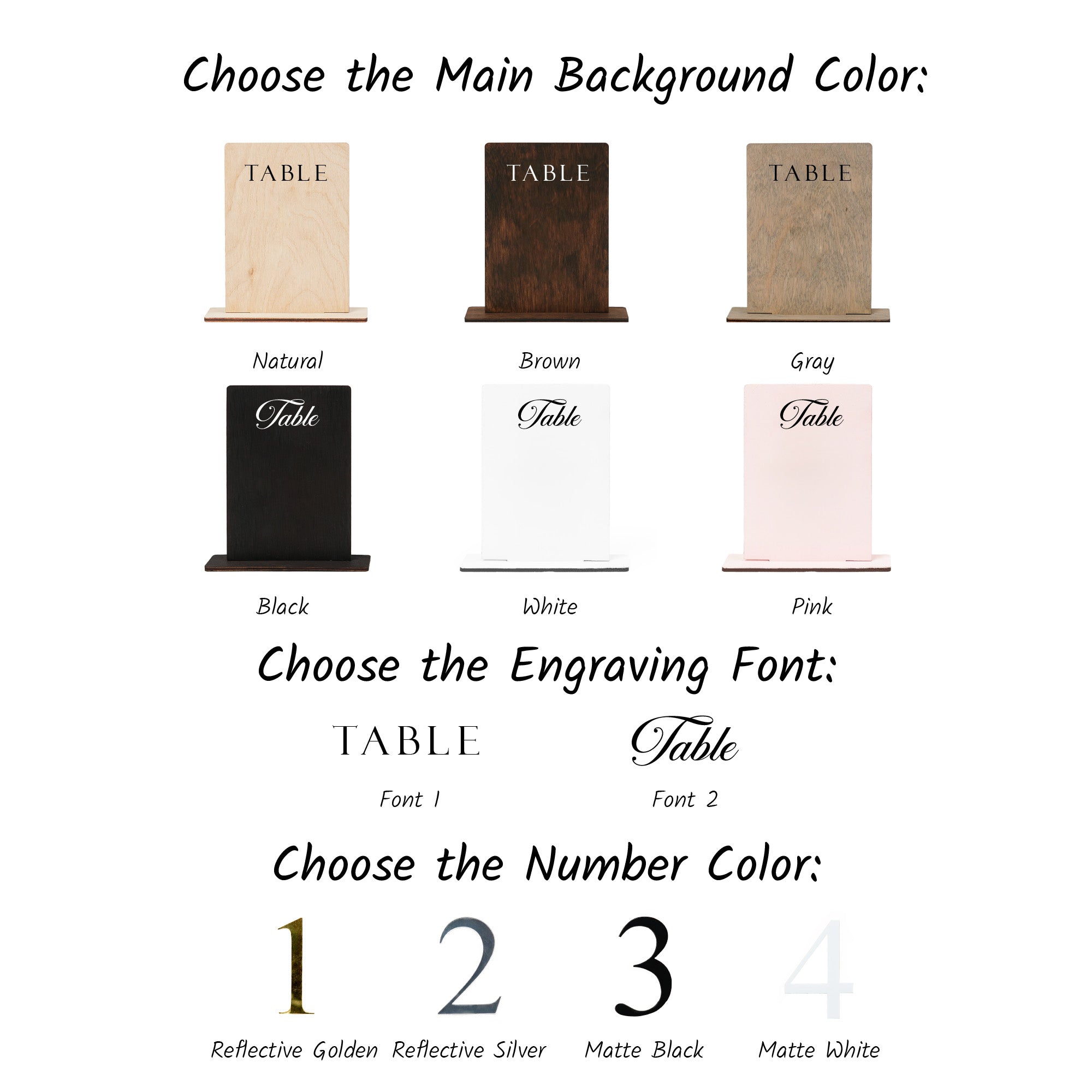 In the additional comment section specify your Number Color: Golden, Silver, Black or White.