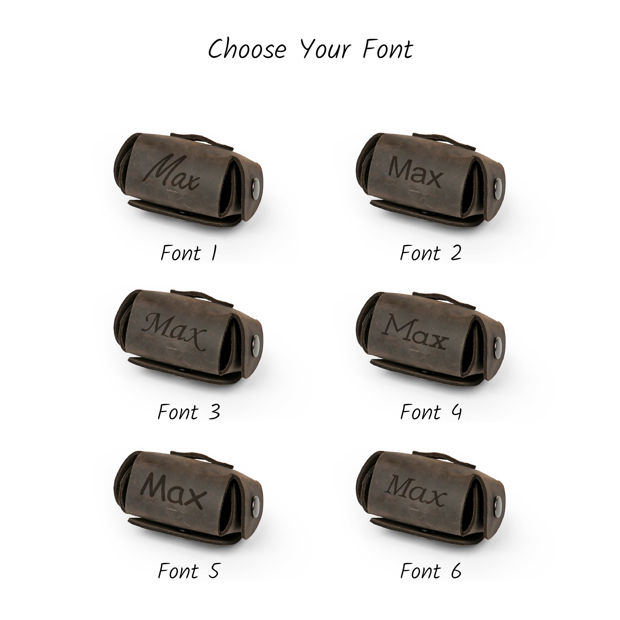 We can engrave your desired text on the leather, making it a unique and practical solution for your dog's needs. You can also choose your preferred leather color.
