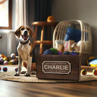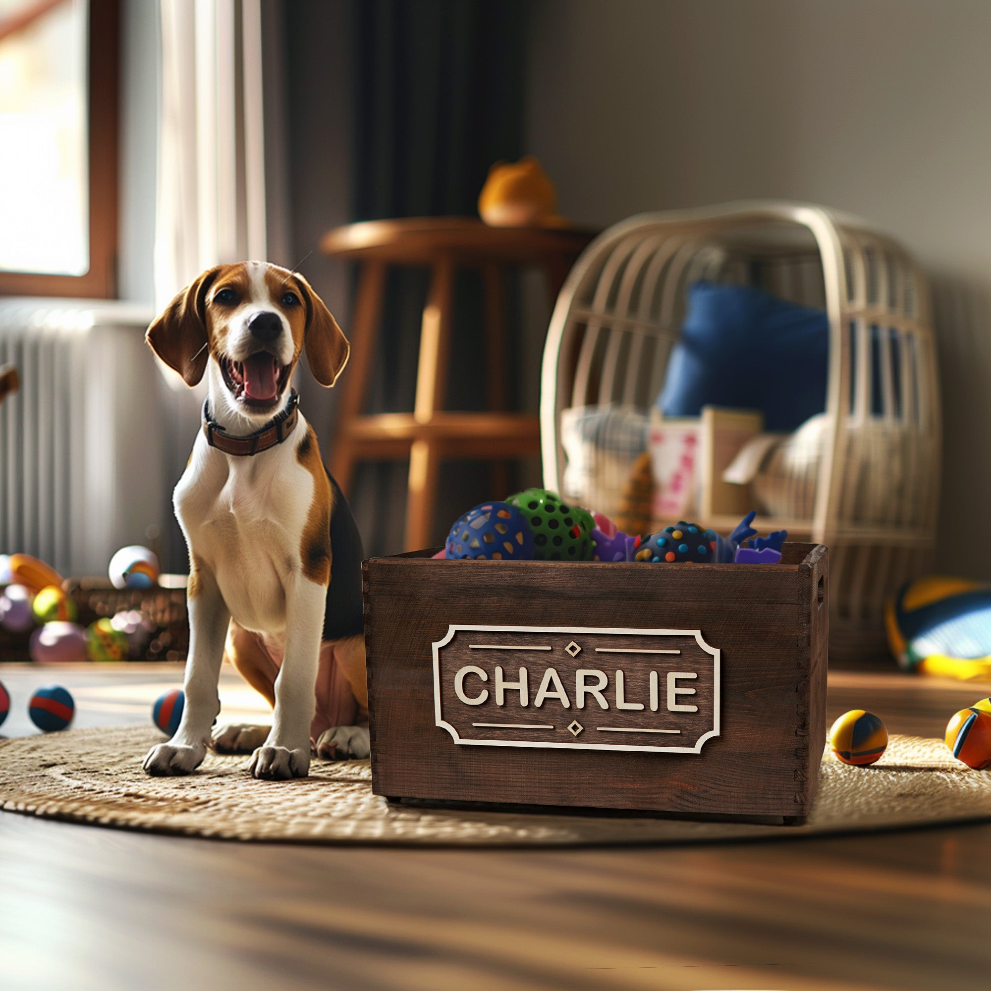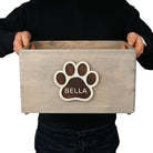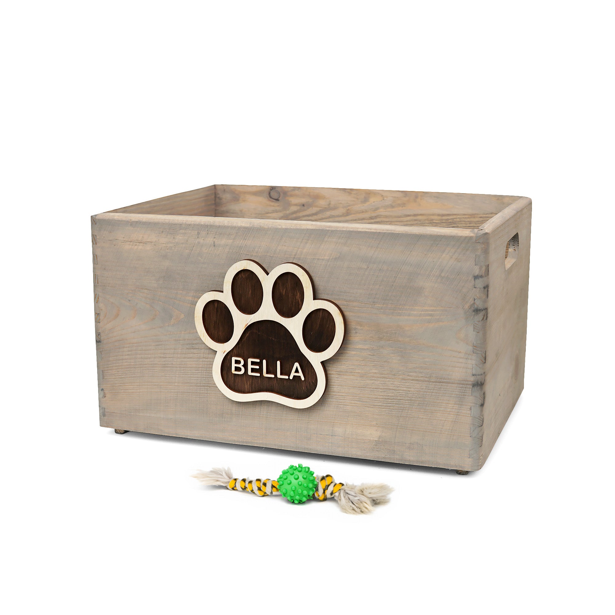 Keep your pet’s toys and essentials organized with this wooden pet storage box. Made from pine wood, it’s perfect for storing dog toys, treats, grooming supplies, or small accessories. The box can be customized with your pet’s name and on a nameplate, adding a unique touch to your home. Ideal as a dog toy organizer, pet storage container, or custom gift for dog lovers, it combines practicality and style for any pet owner.