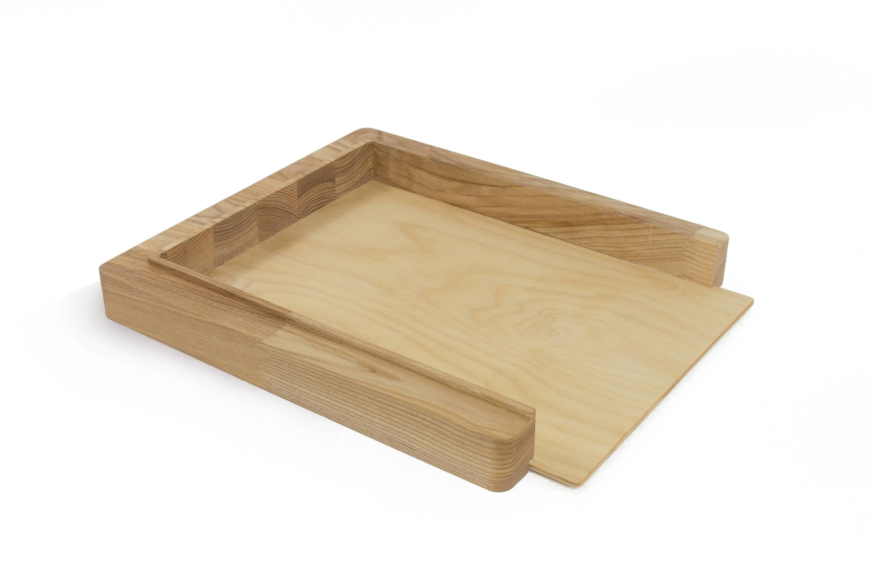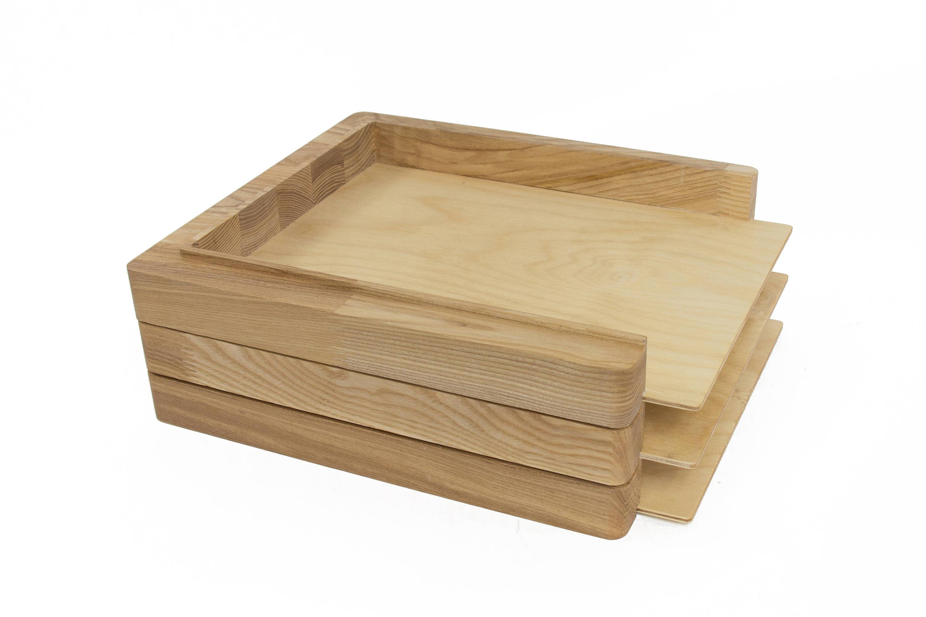 This well-made, solid paper tray with 3 folders will help your desk look stylish and well-organized. All your papers, documents, etc. will be perfectly stacked in the right order. Besides, this paper tray looks really beautiful. The frame is made from solid ash tree wood and birch plywood s sheet serves as the "floor" of the tray.