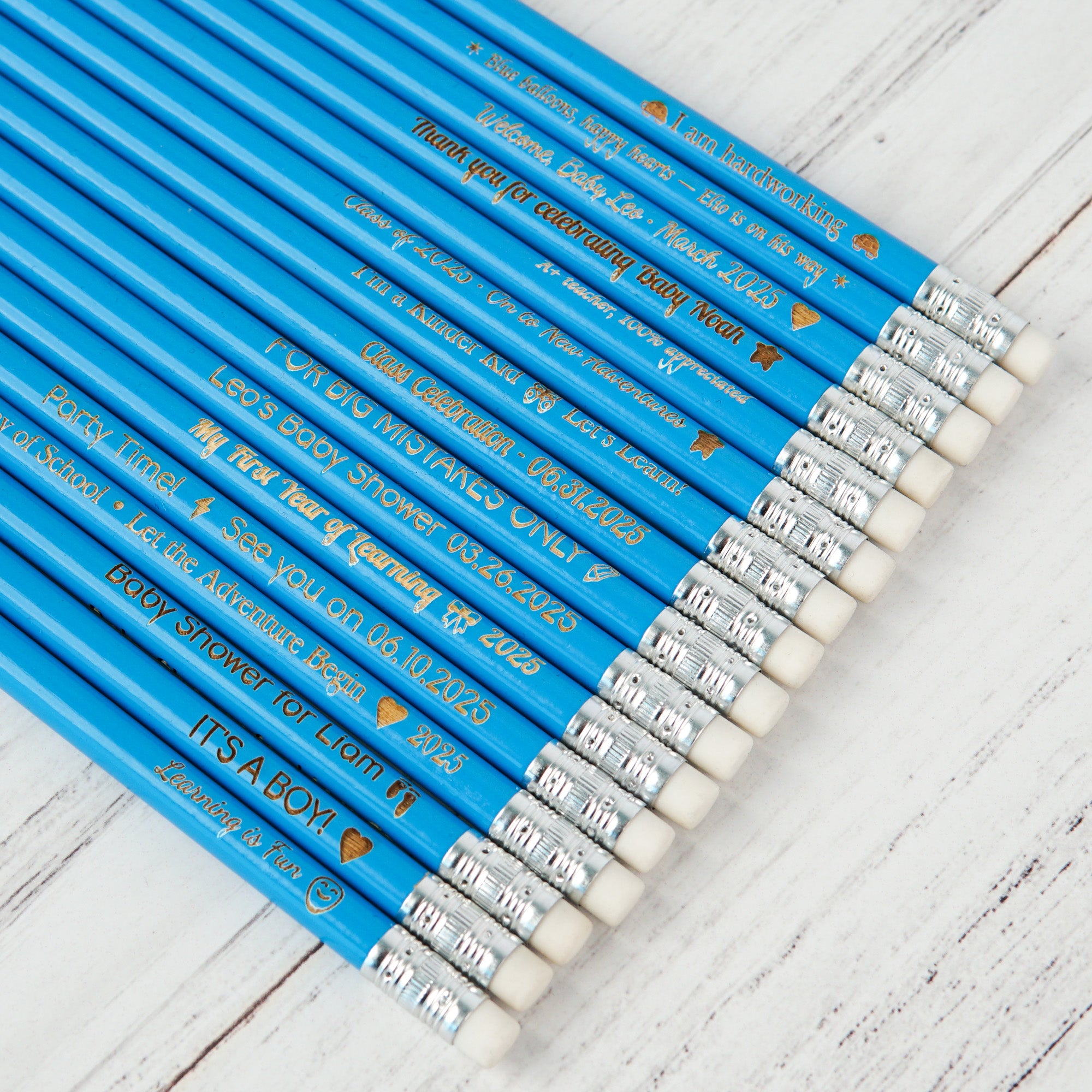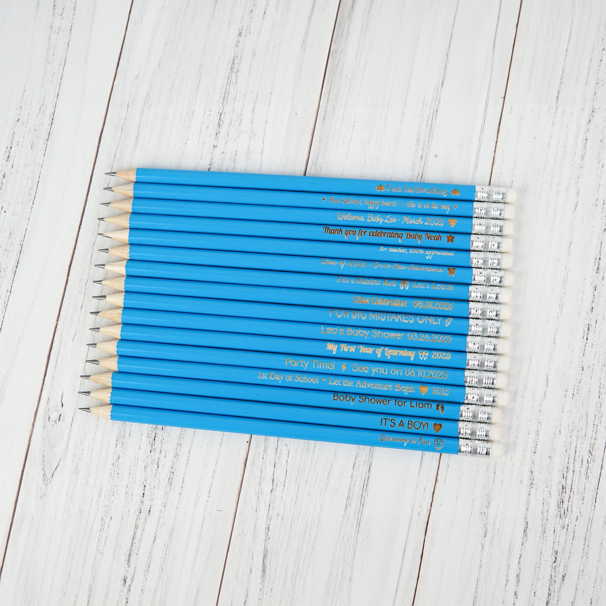 Please write the text you'd like on the pencils in the 'additional comment' section.