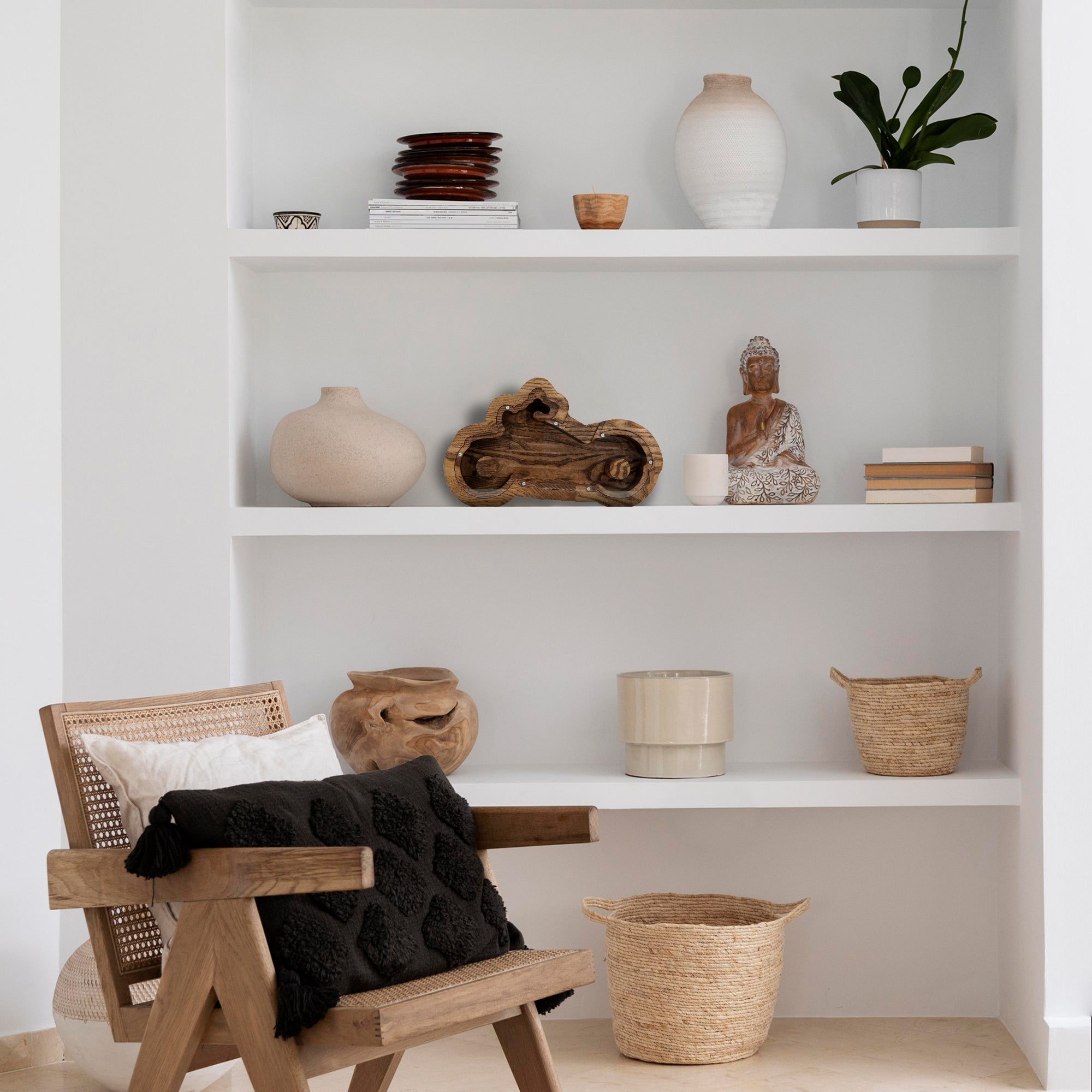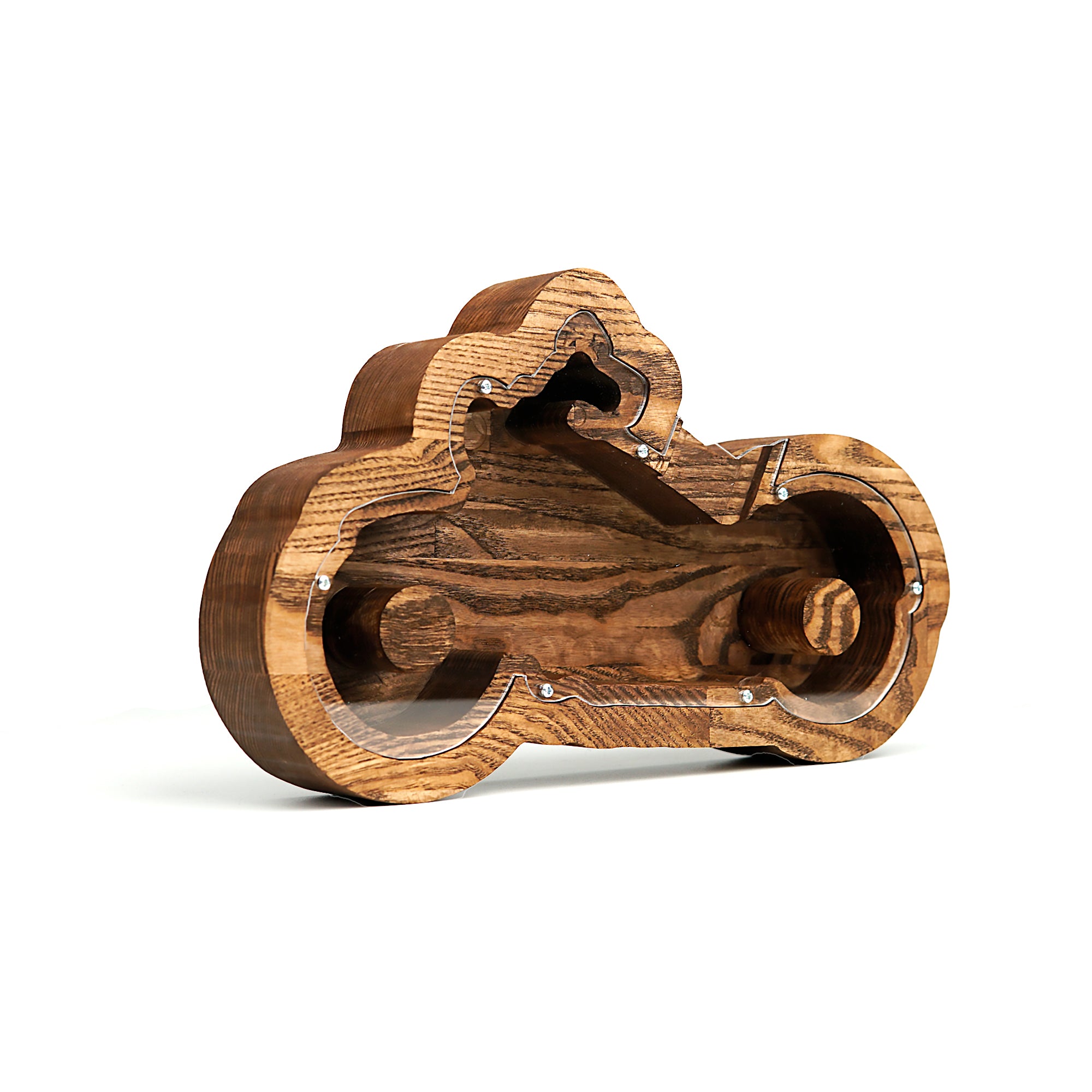 Beyond its practical purpose, our piggy bank serves as an exquisite piece of home decor. Its intricate motorcycle design and choice of natural wood tones or painted finishes make it a versatile addition to any interior design theme. Place it on your shelf, desk, or mantel to infuse a dash of character into your living space.