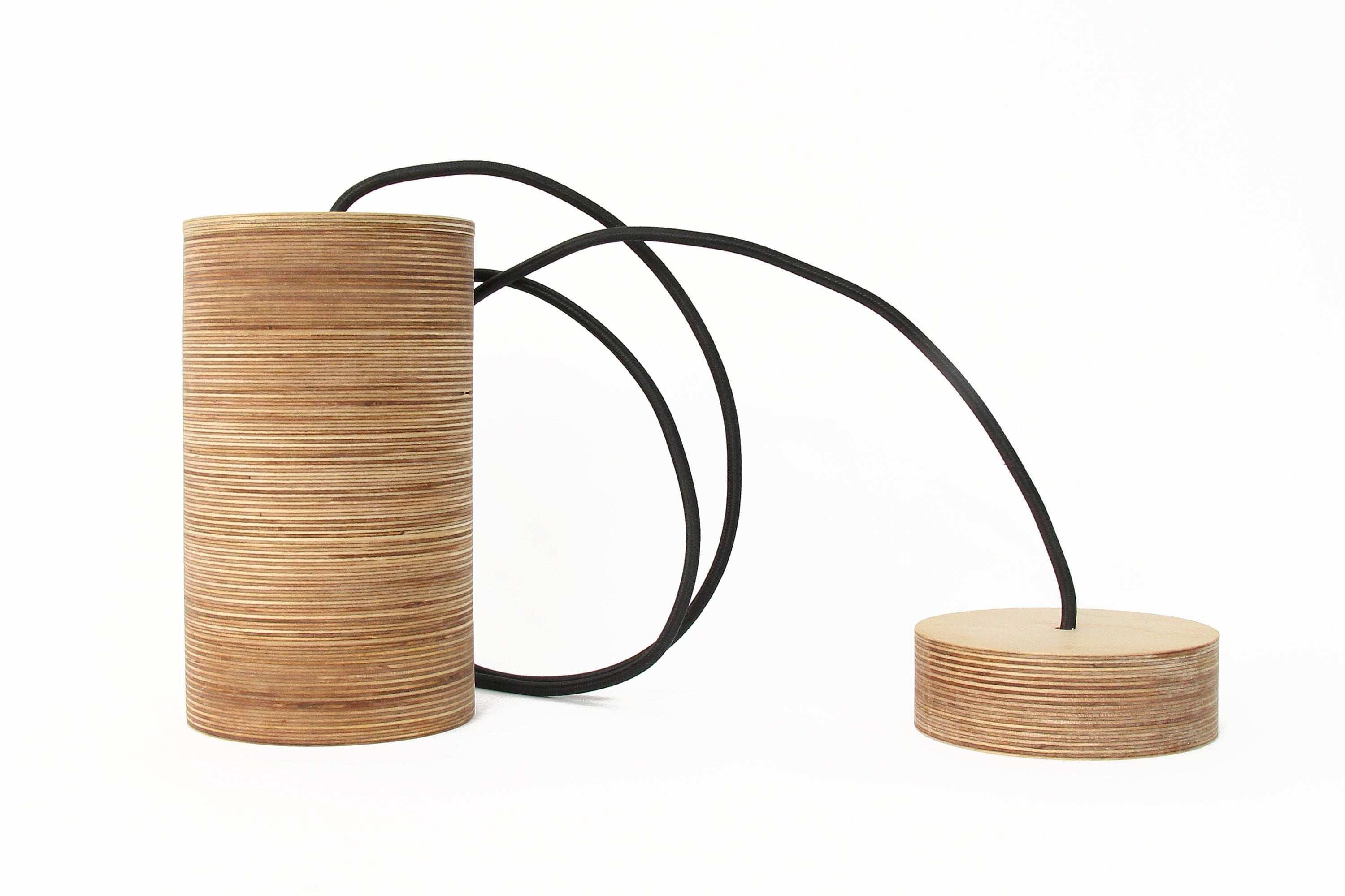 Ceiling lamps are made of environmentally friendly and ecologic materials. The base is made from a certified organic material ‐ glued plywood, oiled for better resistance. The pendant's cord length is adjustable according to your needs. Maximum length: 200 cm / 78.7". Each pendant light can be fitted individually as has its own ceiling canopy, or they can be hung together.