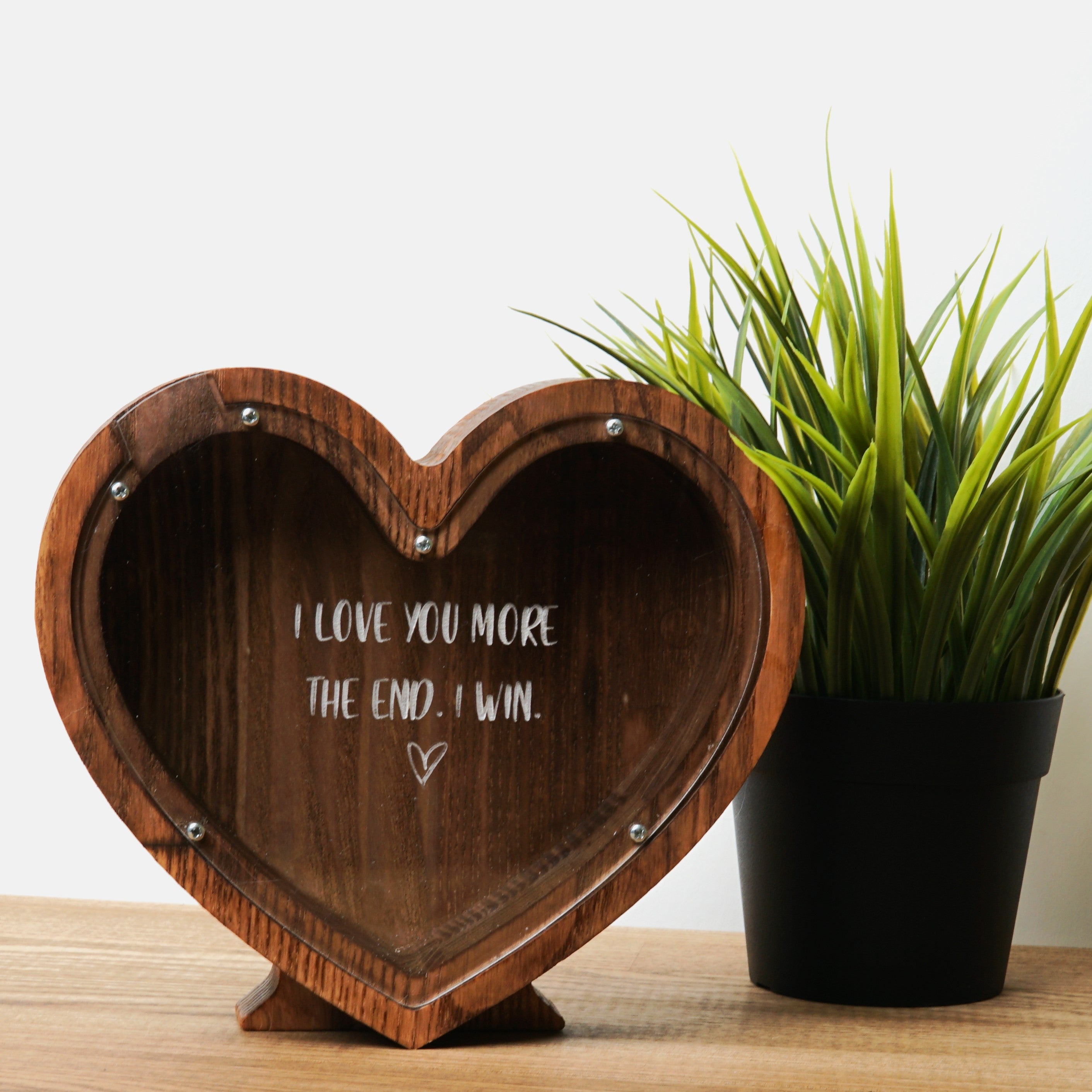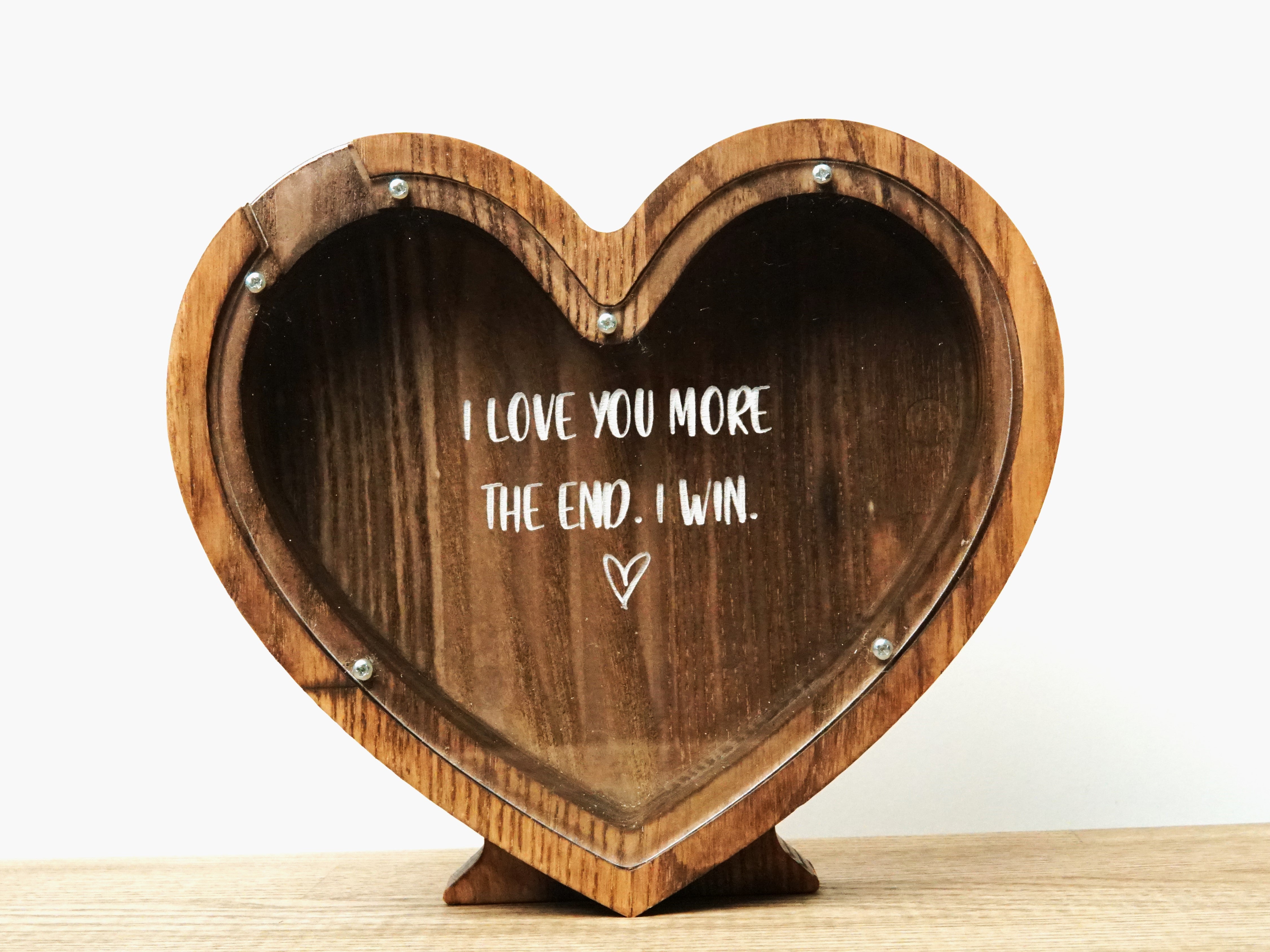 Wooden Piggy Bank Heart (Brown, Engraving)